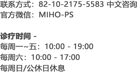 守护你的美好,MIHO整形外科。 以鼻部,提拉,眼部为主的专业整形医院MIHAO整形外科 拥有3名整形外科专门医以及一位常驻的麻醉科医师 把顾客的安全放在第一位的韩国整形医院。 MIHO整形外科不止是韩国顾客喜欢的医院。 日本,越南,泰国,美国等国家的很多顾客也对于MIHO整形外科赞美不断。 从商谈到手术,治疗以及后续管理全部严格进行1:1管理 给顾客带来更加满意的手术结果。 微信:MIHO-PS